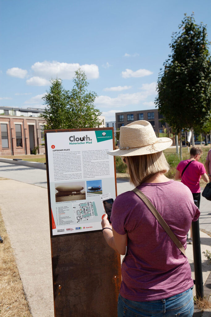Das sichtbarste Ergebnis der Gruppe sind die Erinnerungs-Stelen und Tafeln an 14 Stationen auf dem Clouth-Gelände. Der historische Pfad wurde am 14.6.2023 mit einem Fest auf dem Luftschiffplatz offiziell eingeweiht, mit Vertretern der Stadt Köln, des LVR, der GAG, der modernen Stadt und weiteren Unterstützern.